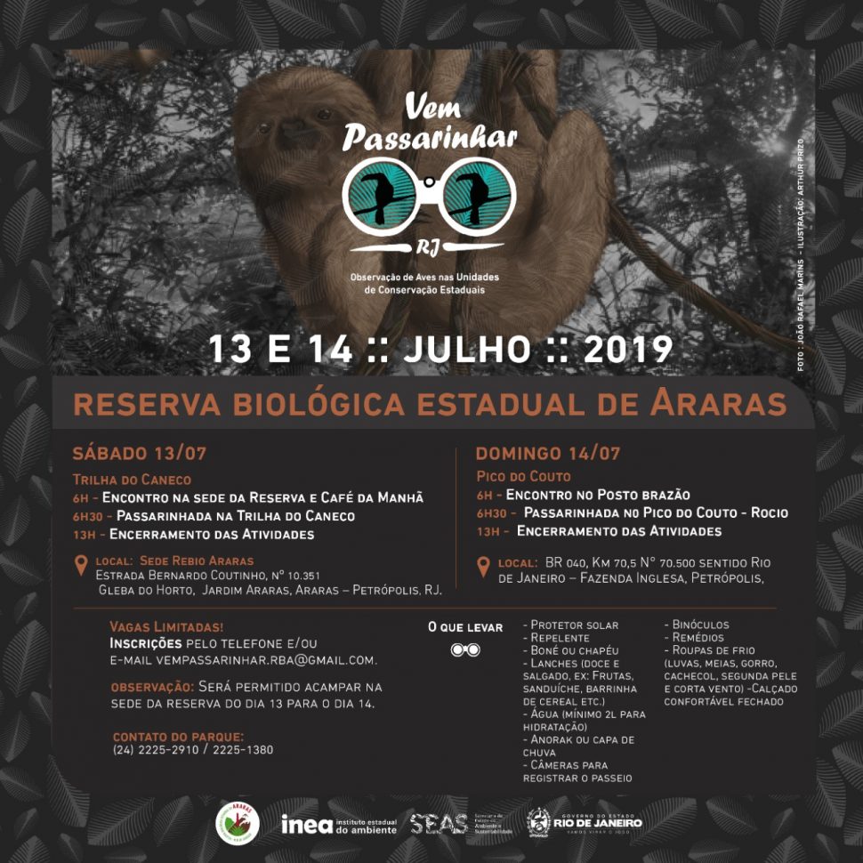 Sábado (13/7) – O ponto de encontro será na sede da Rebio, na Estrada Bernardo Coutinho n°10.351, Gleba do Horto, Jardim Araras, em Petrópolis.
