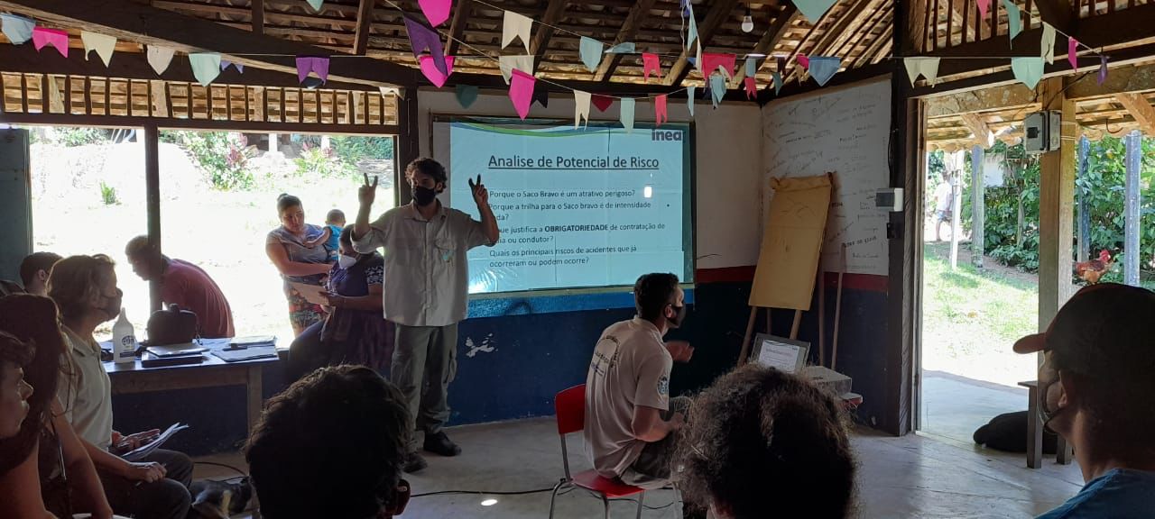 “O curso foi motivado pela necessidade, cada vez maior, de disponibilizar condutores de visitantes credenciados pelo INEA aos visitantes, uma vez que a Resolução INEA nº 192/2019 condiciona o acesso à trilha que leva ao atrativo Cachoeira do Saco Bravo à contratação de guia de turismo ou condutor de visitantes credenciado pelo órgão.”, conta Ana Carolina Távora, gestora da Reej.
