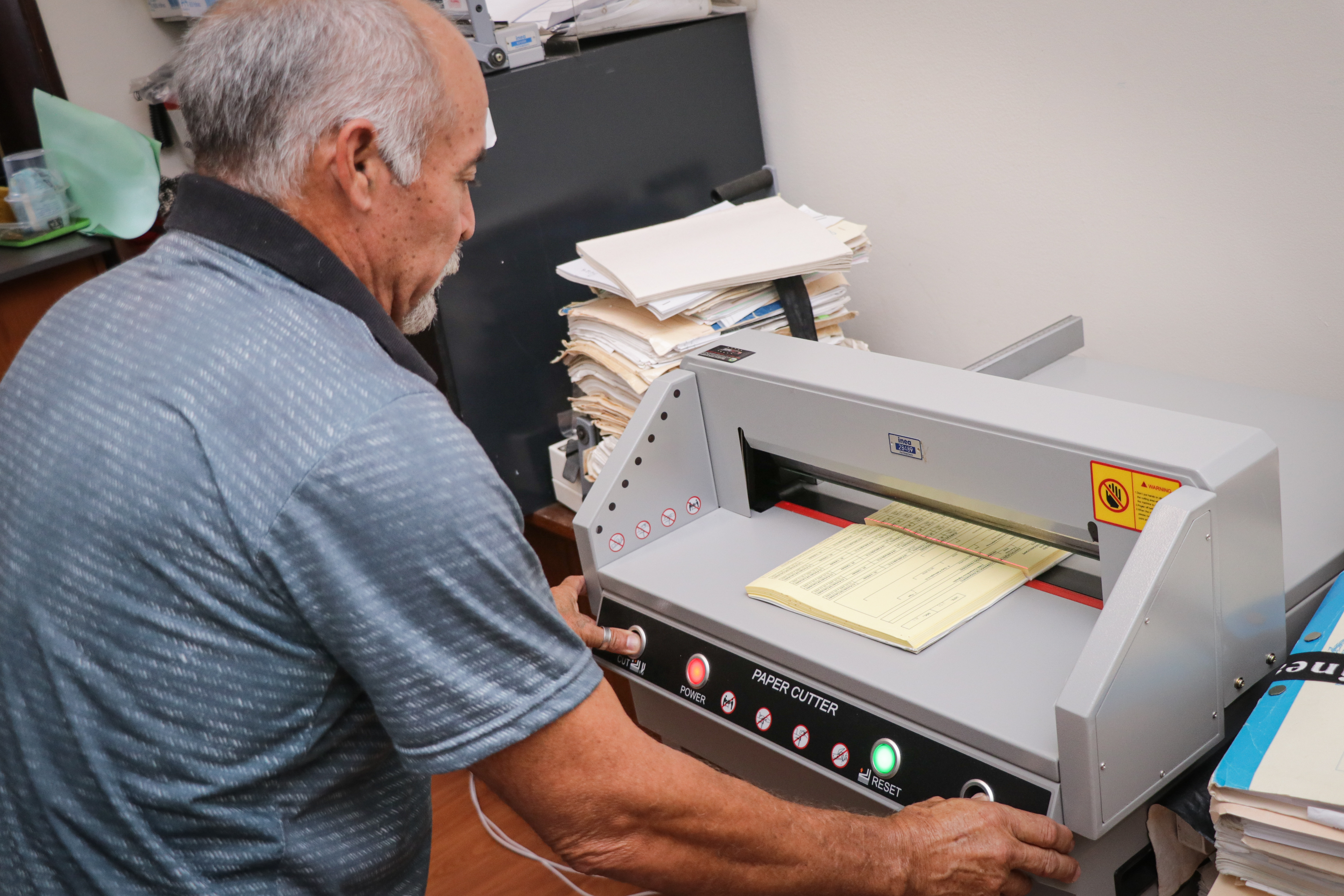 De acordo com o servidor da Central de Cópias Antônio Ivan, responsável por fabricar os bloquinhos, o processo é bem simples. “Primeiramente colocamos as folhas com o lado em branco virado para cima. Depois que a cola seca, é só cortar na guilhotina e está pronto. Sempre levo uns bloquinhos para jogar baralho onde moro. O reaproveitamento de papel aqui é útil de diversas maneiras”, comenta Ivan, que trabalha no Inea há 32 anos.