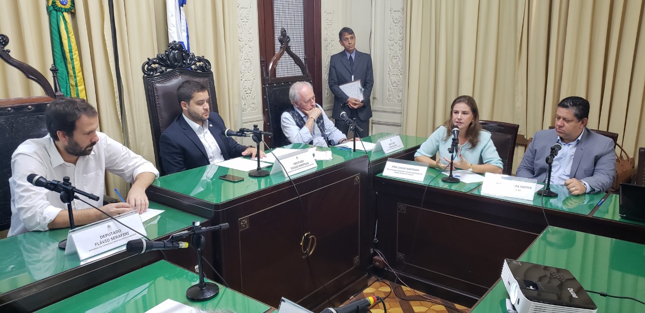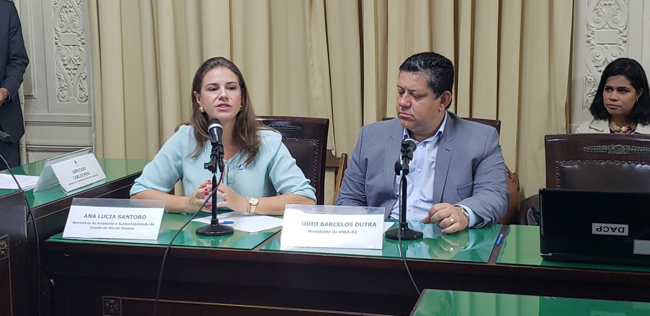 A secretária de Estado do Ambiente e Sustentabilidade, Ana Lúcia Santoro, e o presidente do Inea, Claudio Dutra, participaram nesta quarta-feira (15/5) da primeira audiência pública da Comissão de Defesa do Meio Ambiente da Assembleia Legislativa do Estado do Rio de Janeiro. Ao lado dos subsecretários da Seas e dos diretores do Inea, a secretária apresentou os principais desafios e conquistas da pasta nos primeiros meses da nova gestão.