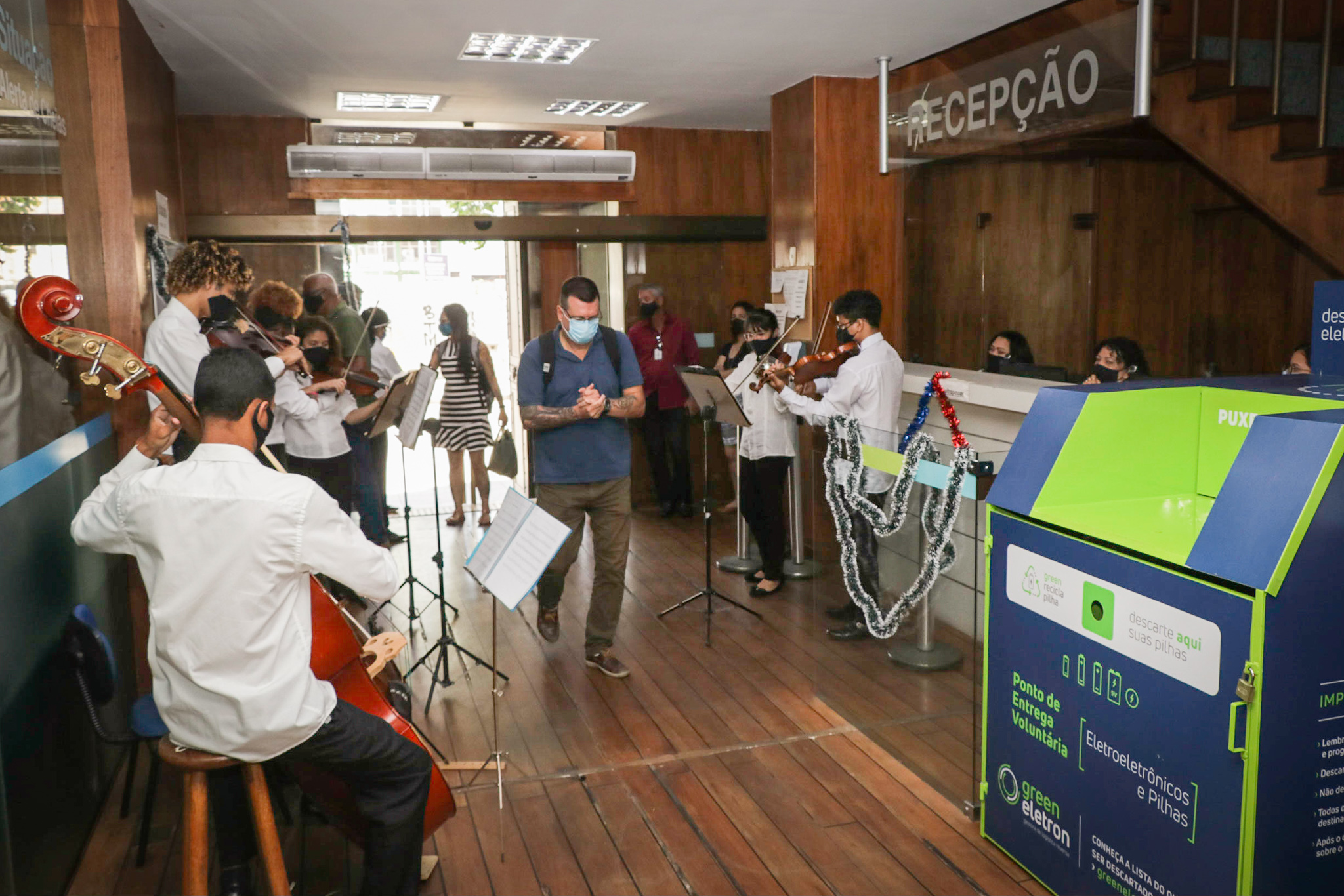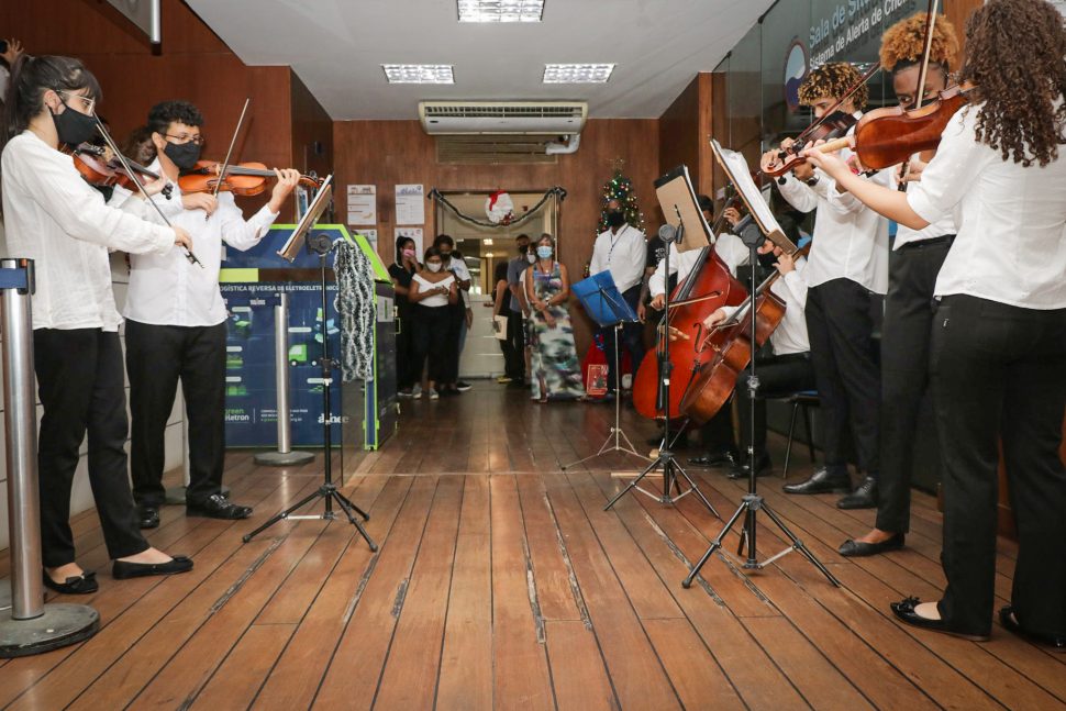 Para celebrar a reta final de 2020, a Secretaria de Estado do Ambiente e Sustentabilidade (Seas) e o Instituto Estadual do Ambiente (Inea) promoveram nesta terça-feira (15/12) uma surpresa aos servidores e visitantes. A orquestra de música clássica da organização Ação Social Pela Música do Brasil se apresentou pela manhã recepcionando todos que chegavam na sede dos órgãos, na Avenida Venezuela, no Centro do Rio de Janeiro.