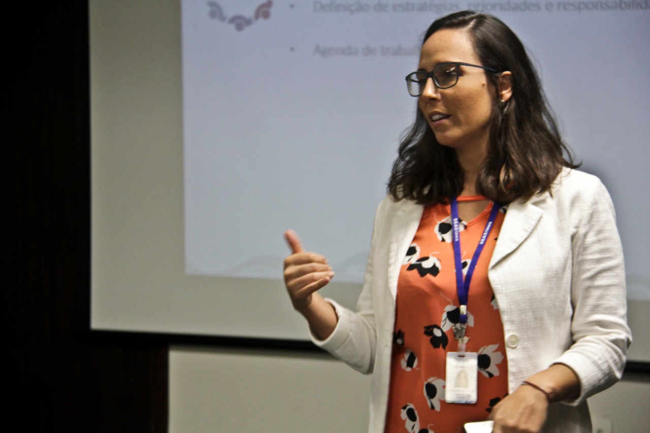 A subsecretária de Recursos Hídricos e Sustentabilidade, Renata Bley, apresentou o planejamento estratégico da pasta para dar escala de política pública à educação ambiental no estado e falou sobre a importância das parcerias e integração dos atores para que o programa estadual de educação ambiental seja implementado.