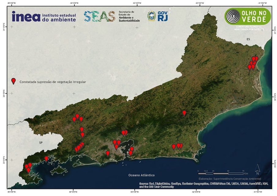 Durante as vistorias, foi constatada supressão de vegetação irregular em 39 alertas (de um total de 50), representando uma área equivalente a 37 campos de futebol, distribuídos pelo território fluminense. Como resultado, foram geradas, pelo menos, 11 medidas administrativas, cinco máquinas apreendidas, quatro pessoas conduzidos à delegacia, cinco obras embargadas, apreensões de aves em cativeiro ilegal, interdição de cinco áreas de extração mineral ilegal (areola) e loteamentos irregulares desfeitos.
