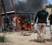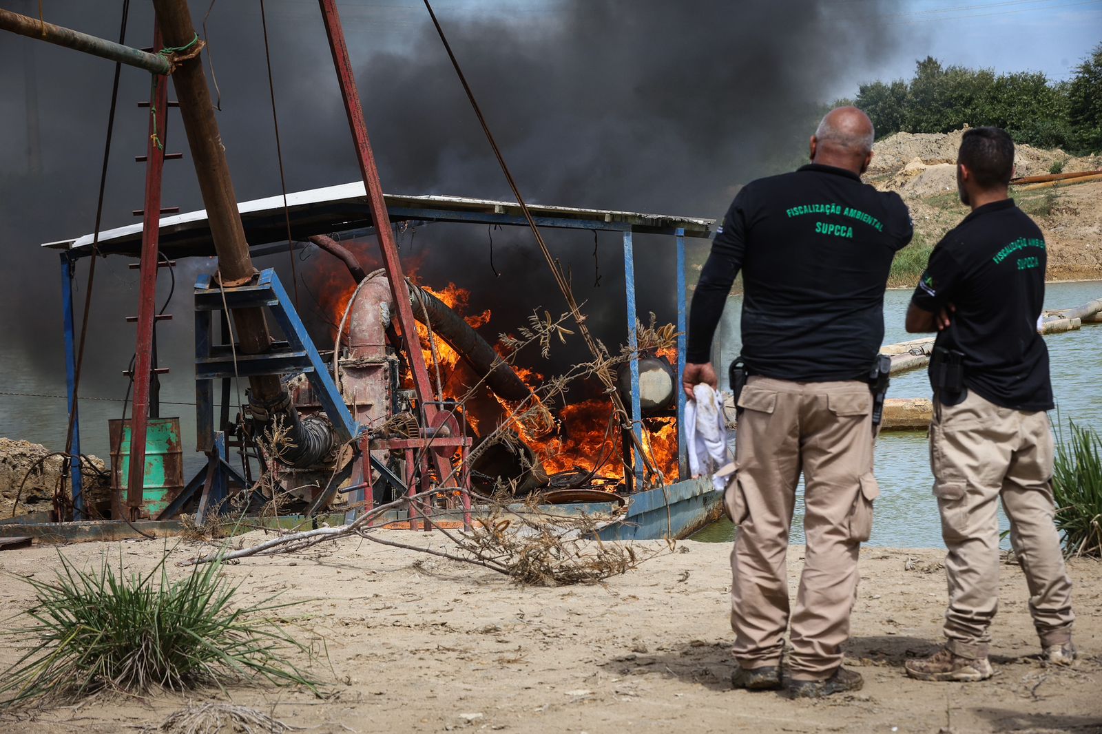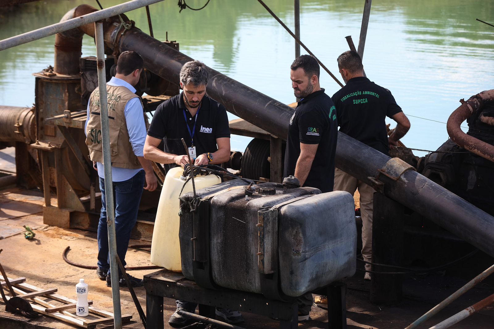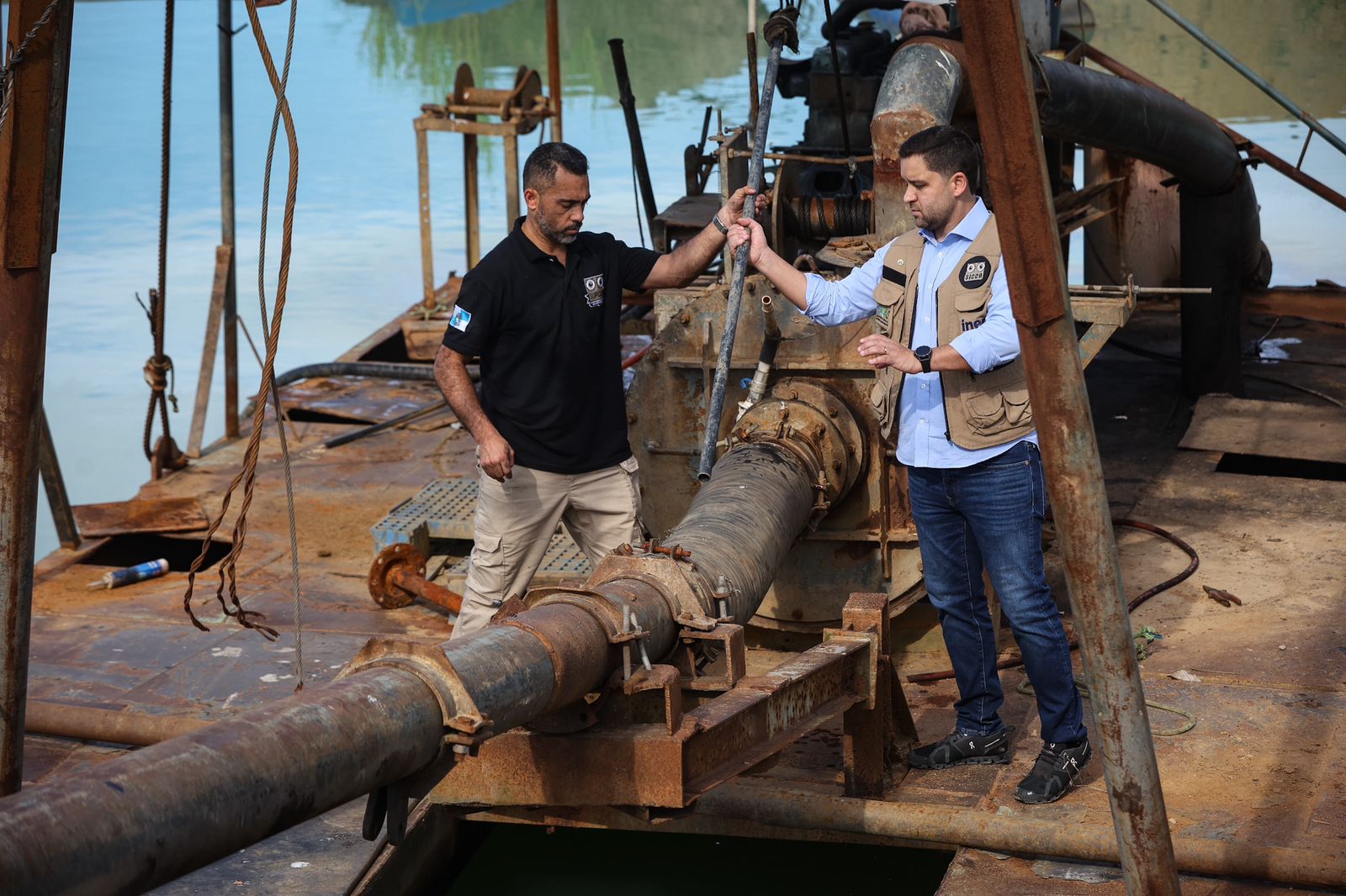 Após levantamento prévio, técnicos e agentes conseguiram flagrar a atividade ilegal em plena operação e à luz do dia na localidade. Duas balsas utilizadas na extração foram destruídas por meio do uso de fogo e cinco maquinários foram apreendidos. Além de serem conduzidos à delegacia para prestar esclarecimentos, os dois infratores ambientais detidos na localidade serão multados e responderão por crime ambiental. A operação vai desmobilizar 11 areais clandestinos no município ao longo do dia e conta com apoio da Polícia Civil, do Comando de Polícia Militar (CPAM) e da Polícia Federal.