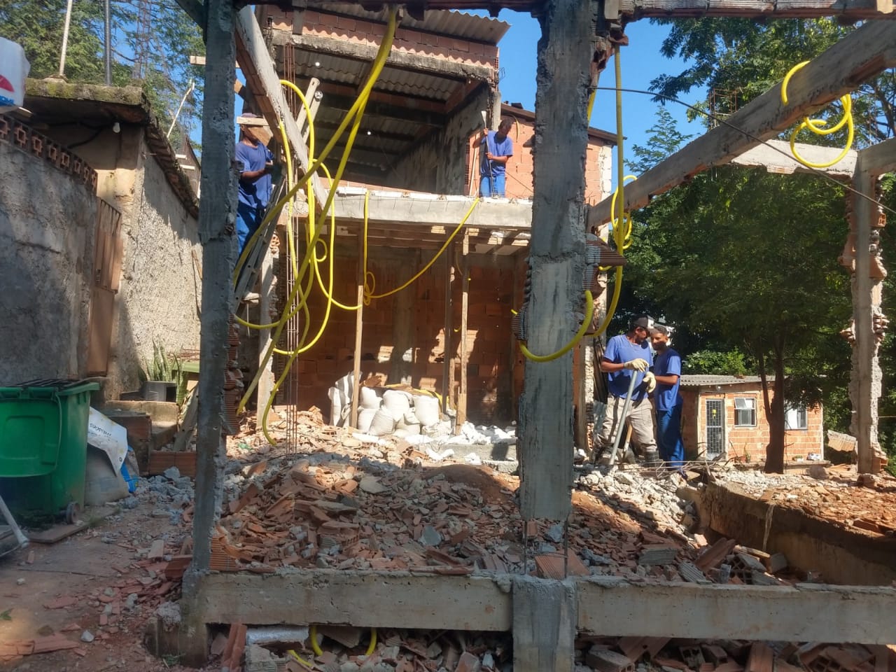 A equipe realizou a demolição sumária de uma casa. As demais construções estavam habitadas e, por isso, a demolição das mesmas só pode ser realizada com decisão judicial.
