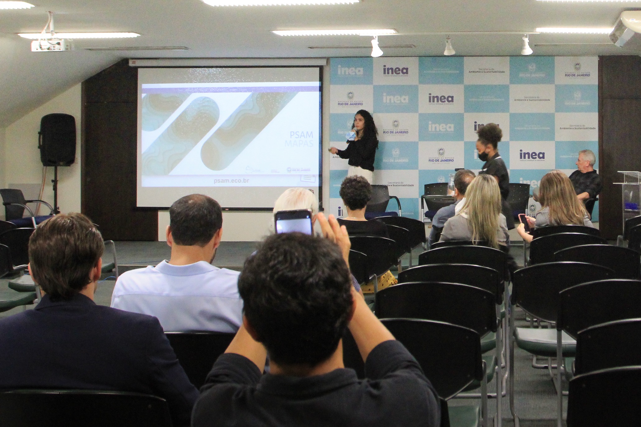 Para abrir o evento, a equipe técnica apresentou os resultados do PSAM MAPAS – a base de dados georreferenciados com informações sobre saneamento, inicialmente dos municípios do entorno da Baía de Guanabara e atualmente do Estado do Rio de Janeiro – e o Diagnóstico Técnico Participativo, que reúnem dados sobre os sistemas de abastecimento de água e de esgotamento sanitário dos municípios do Rio de Janeiro. Além disso, foi apresentado o Laboratório de Inovação, que reúne iniciativas voltadas à efetiva aplicabilidade das políticas públicas de saneamento no Estado do Rio de Janeiro.