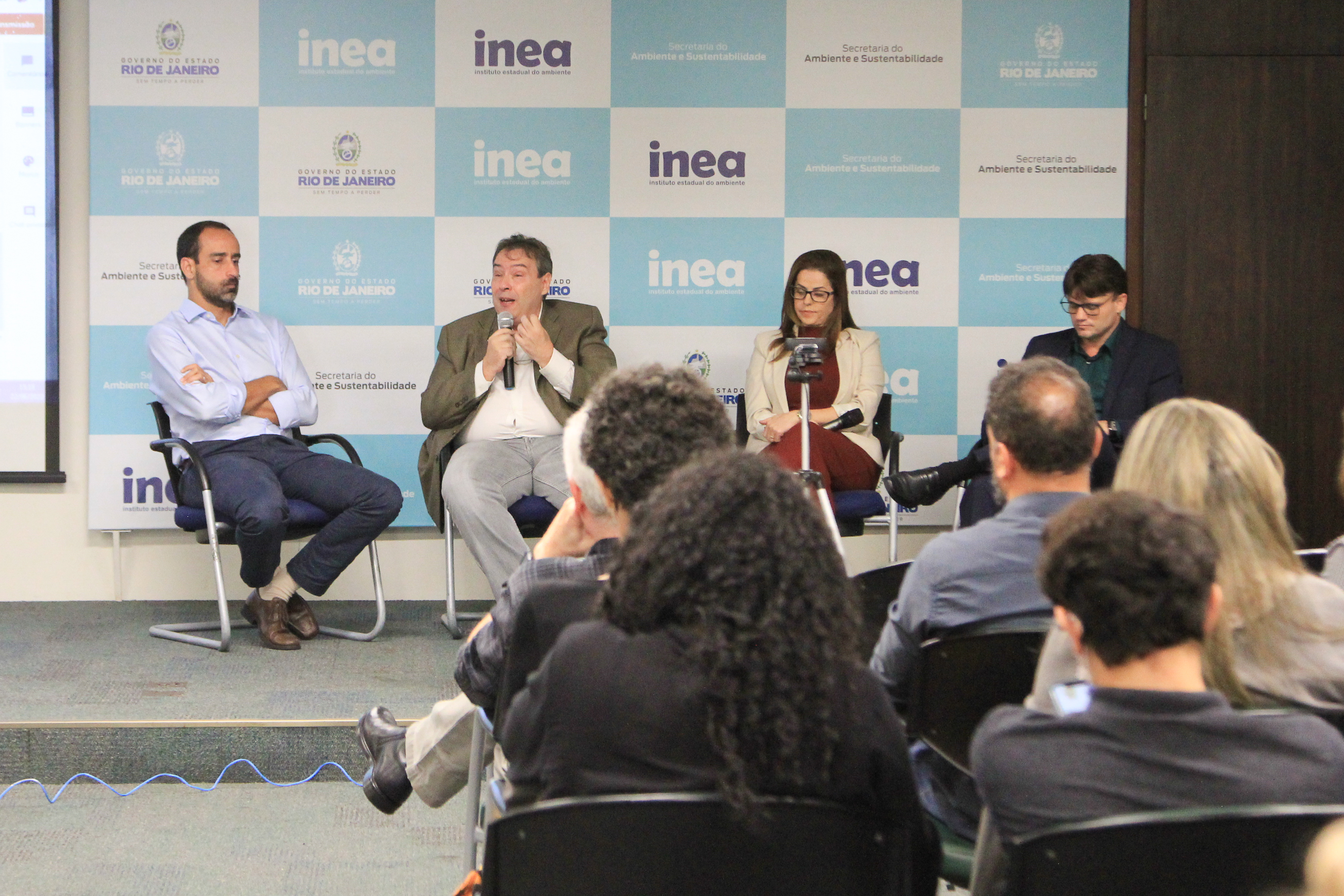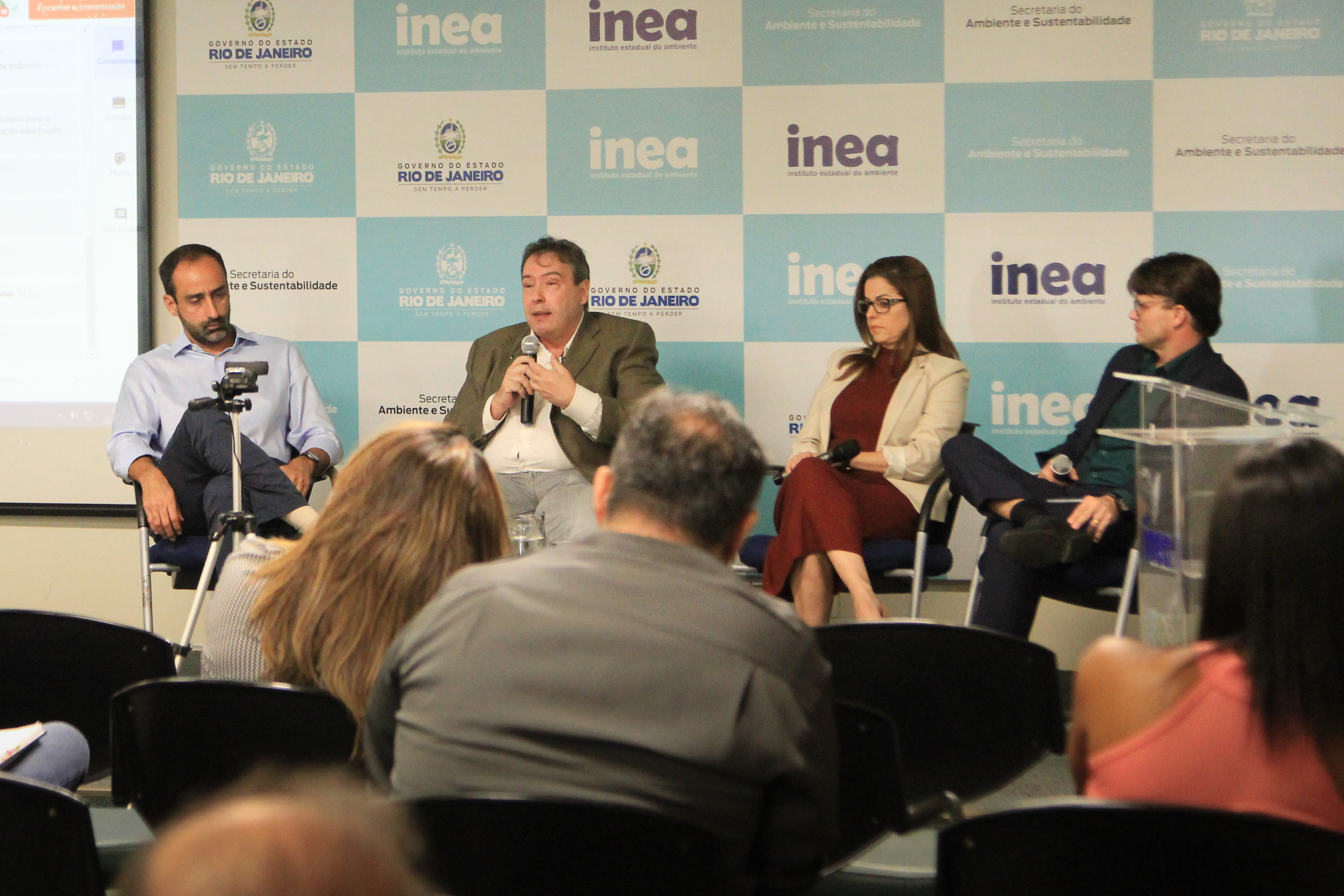 A roda de conversas contou com a participação do superintendente de Engenharia Sanitária da Seas, Luis Carlos Lopes, a coordenadora do Curso de Especialização em Engenharia Sanitária e Ambiental da Universidade Estadual do Rio de Janeiro (UERJ), Rosane Andrade, o promotor de Justiça do Estado do Rio de Janeiro, Murilo Bustamante, e o diretor de Saneamento Metropolitano Integrado, Alexandre Aires.