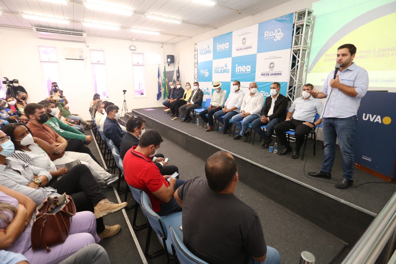 Dentre as autoridades estaduais presentes no lançamento das obras, estiveram o secretário de Obras e Infraestrutura, Max Lemos e o secretário de Ciência, Tecnologia e Inovação, Dr. Serginho, além dos prefeitos de Araruama, Cabo Frio, Iguaba Grande, Rio Bonito e São Pedro da Aldeia. Representantes da Diretoria de Recuperação Ambiental (Diram) e da Superintendência Regional Lagos São João (Suplaj) do Inea também marcaram presença.