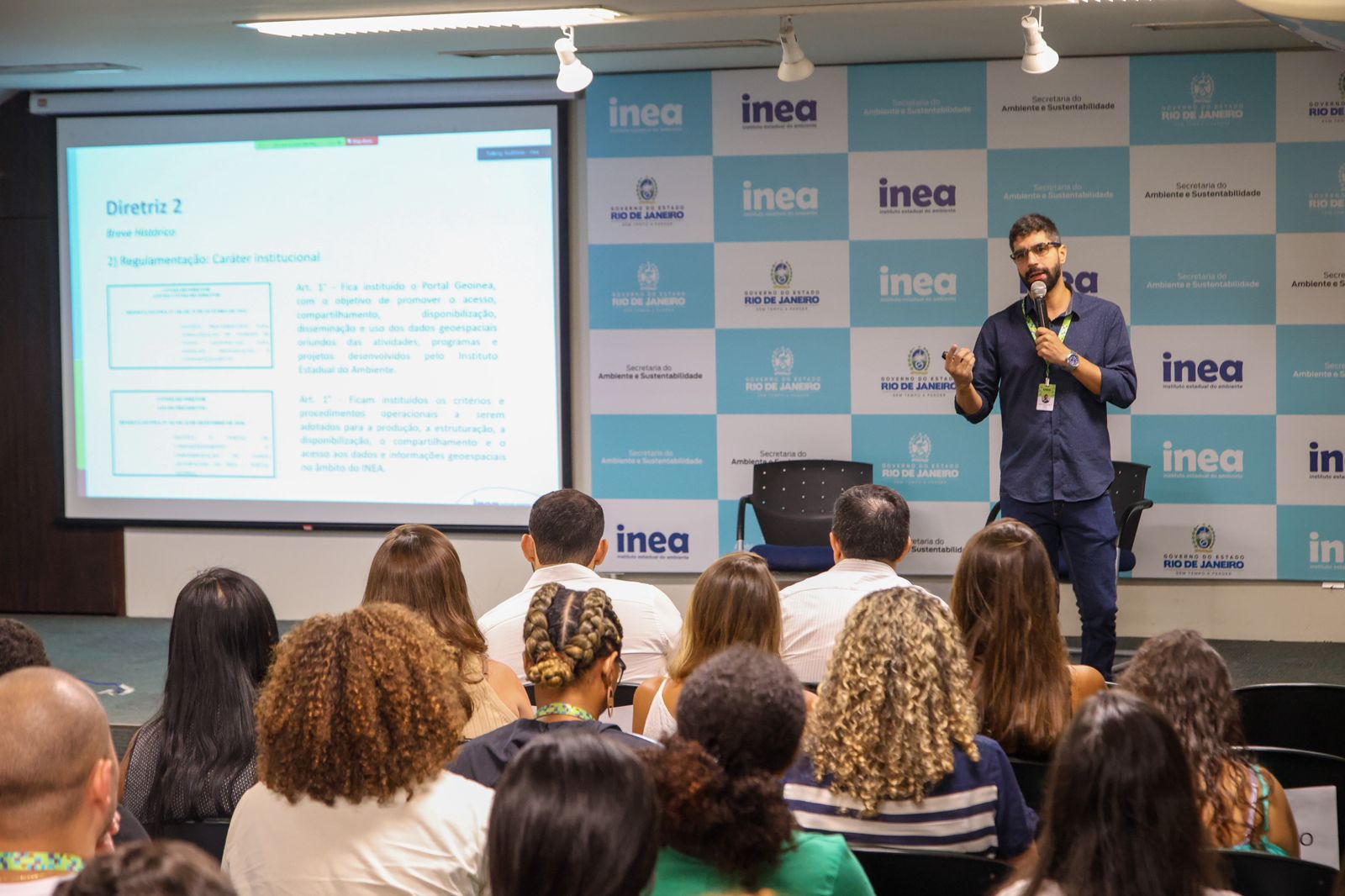 O portal, que pode ser acessado aqui, reúne informações acerca da estrutura governamental ambiental de cada município fluminense através de um mapa interativo, além de dashboards com indicadores compilados deste cadastro. É possível também visualizar as atividades ambientais licenciadas, áreas contaminadas e, no futuro, outros elementos na temática. A apresentação da plataforma foi realizada pelo gerente de Gestão De Território e Informações Geoespaciais do Inea, Gabriel Lardosa.
