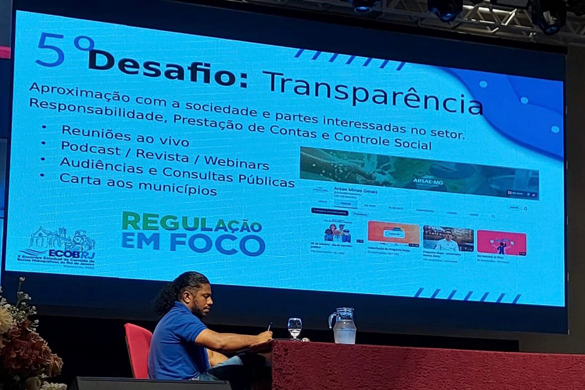 Felipe Freitas, representando o diretor de Segurança Hídrica e Qualidade Ambiental do Inea, Hélio Vanderlei, começou a manhã de sexta-feira coordenando a mesa de debates “Desafios da Regulação”, onde cada convidado apontou os desafios de regulação em suas respectivas áreas de atuação. Participaram da mesa o superintendente-adjunto de Segurança de Regulação de Uso de Recursos Hídricos da ANA, Patrick Thomas, o diretor da Agência Reguladora de Serviços de Abastecimento de Água e de Esgotamento Sanitário do Estado de Minas Gerais, Samuel Barbi, e a diretora de Saneamento Básico e Infraestrutura Viária, da Agência de Regulação de Serviços Públicos do Espírito Santo, Katia Muniz.