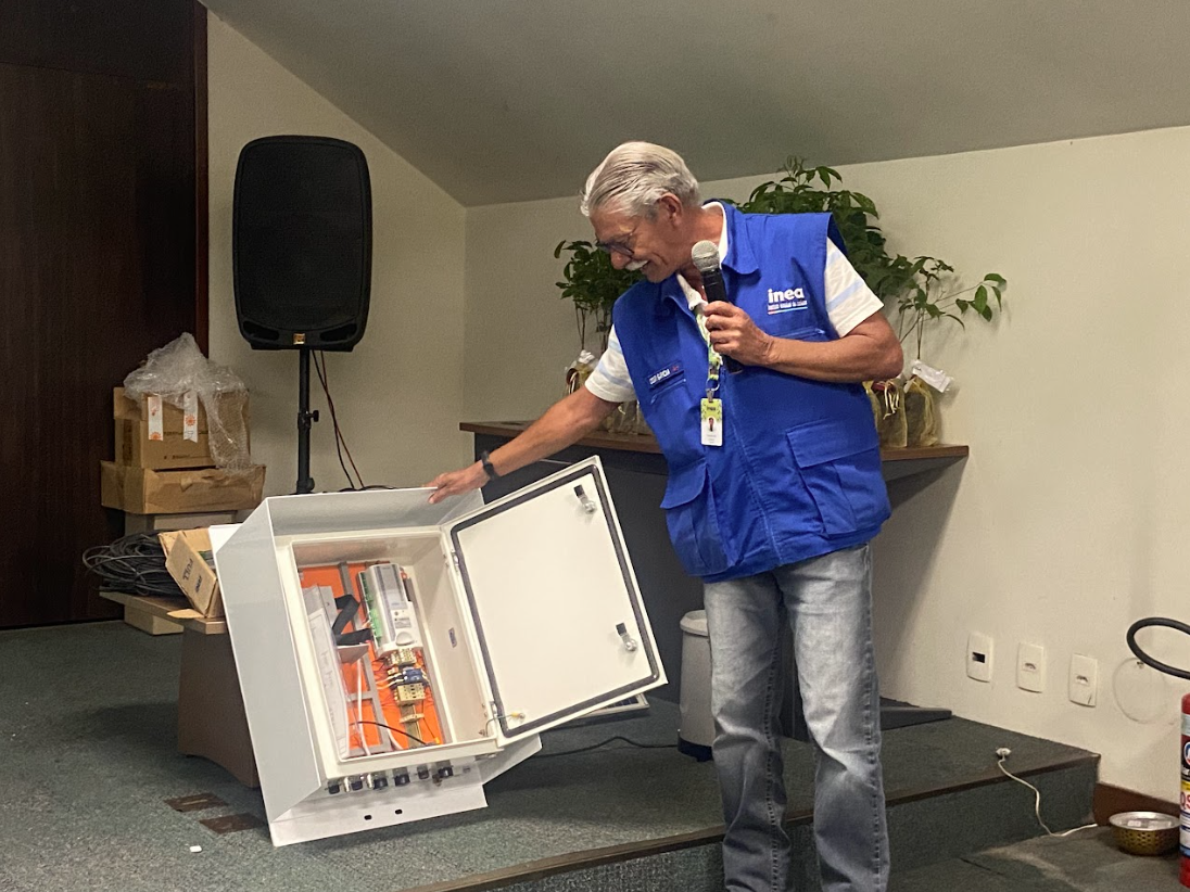 Além de técnicos especializados em segurança de barragens, o engenheiro eletrônico da Gerência de Hidrometeorologia, Cesar Garcia, explicou o funcionamento dos equipamentos hidrometeorológicos do instituto. Entre eles, a estação hidrometeorológica, que monitora o volume das chuvas, nível e vazão de rios.