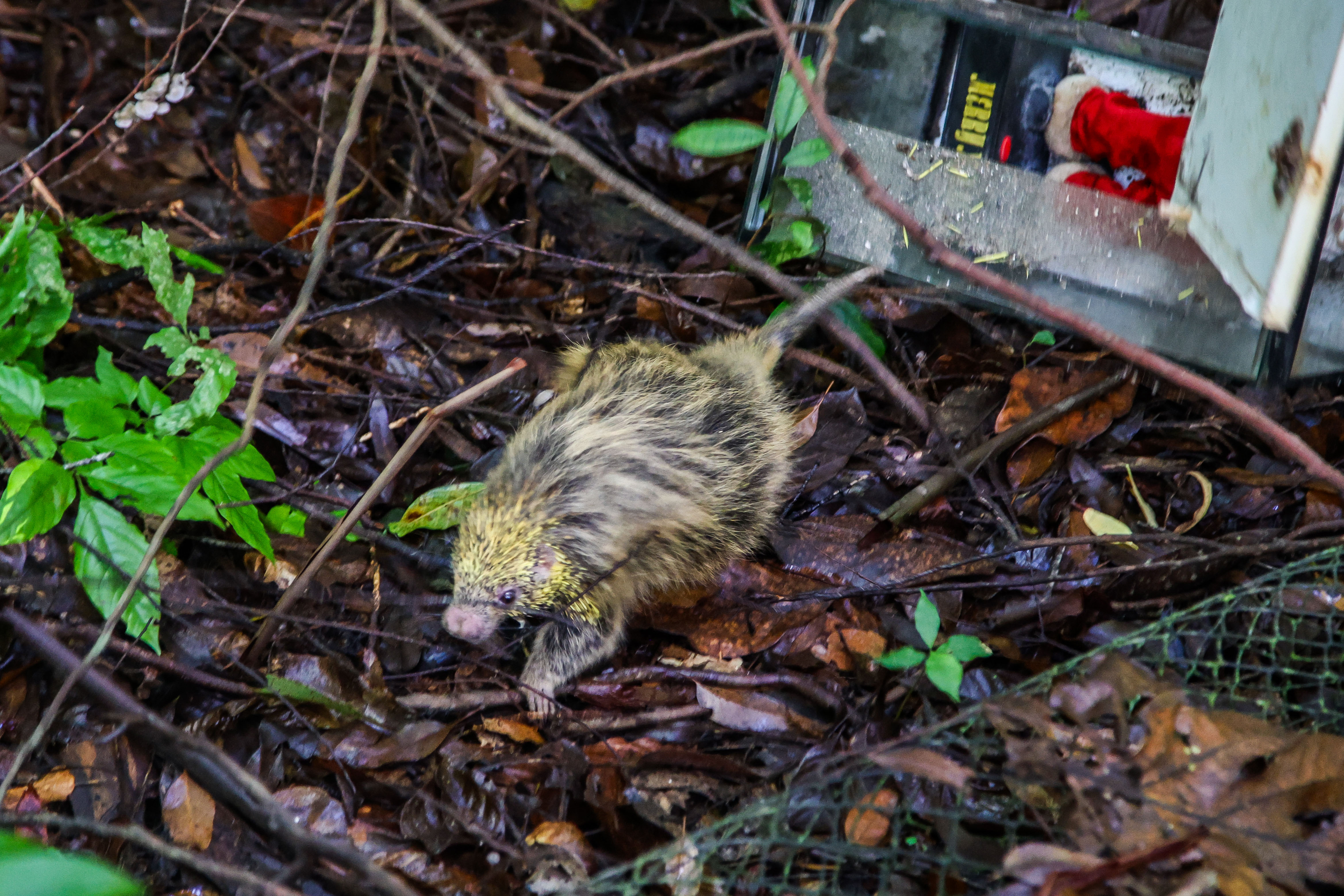 No momento da demolição, ainda foi realizado o resgate de um ouriço, animal silvestre que estava preso na construção.