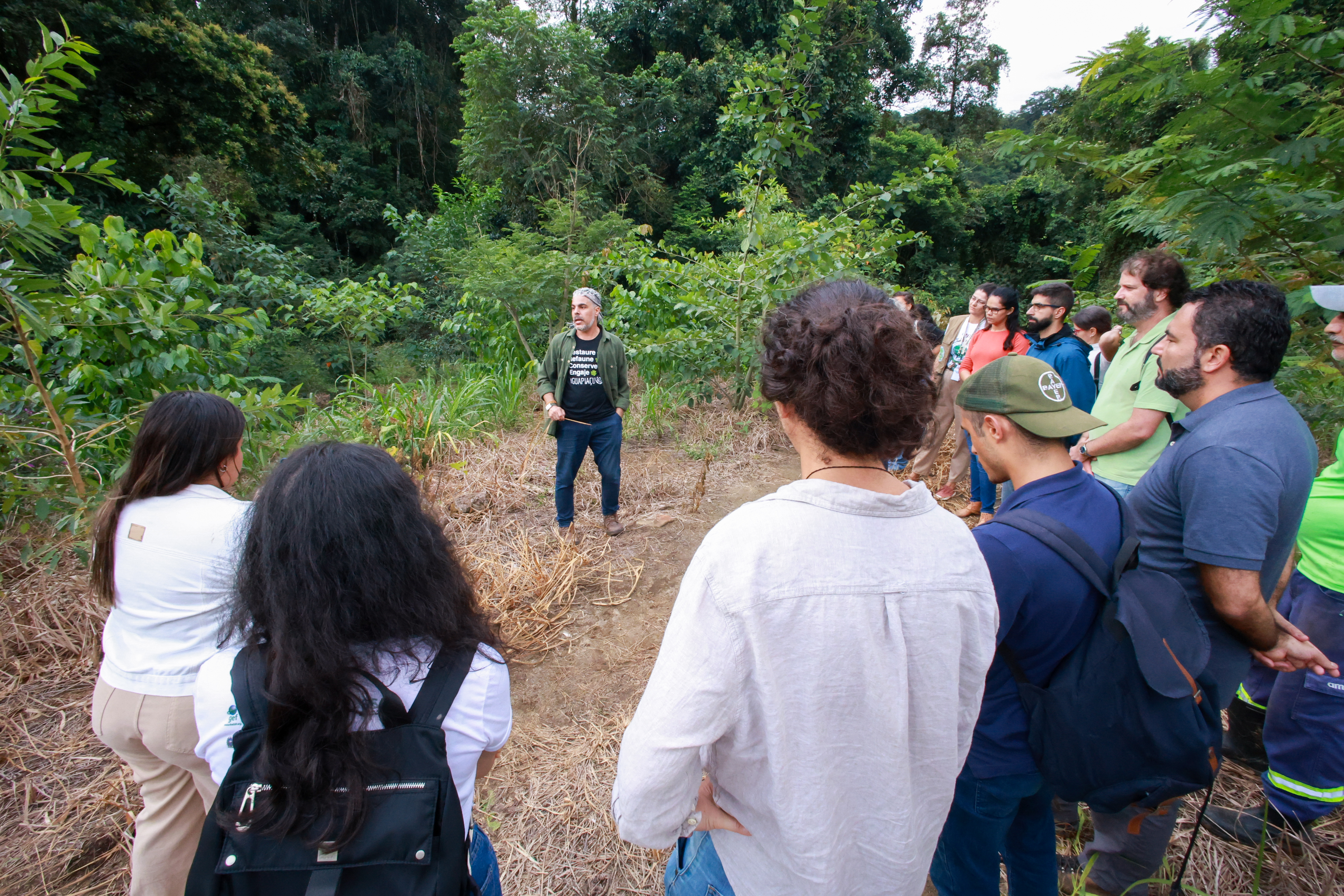 “Aqui, na Fazenda do Carmo, temos um exemplo da primeira fase do Florestas do Amanhã, sendo uma área particular cedida para a restauração florestal. São cerca de 24 hectares de plantio, que vai até a área limítrofe da Reserva Ecológica de Guapiaçu e do Parque Estadual dos Três Picos, formando um mosaico, com a ideia de recuperar a Mata Atlântica”, explicou o superintendente de Mudanças do Clima e Florestas da Seas, Telmo Borges, durante a visita no local.