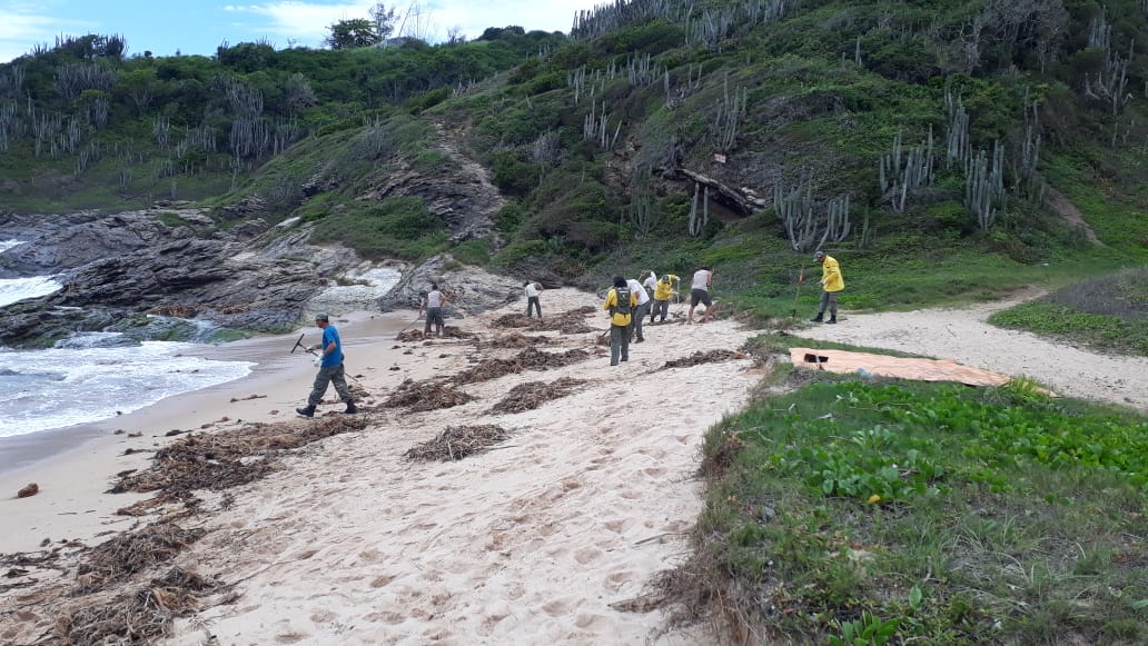 A ação é um apoio às prefeituras da região, a quem cabe esta limpeza. A intenção é que, até o fim do dia, consigam terminar o trabalho na faixa de areia.