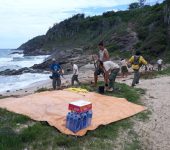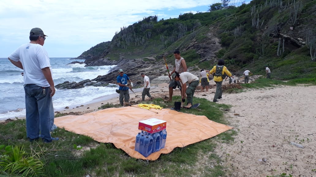 A força-tarefa da Secretaria de Estado do Ambiente e Sustentabilidade e do Instituto Estadual do Ambiente segue no mutirão de limpeza de praias da Região dos Lagos. Neste sábado (21/12), 20 técnicos e guarda-parques dos órgãos ambientais estaduais atuam na Praia de Tucuns, em Búzios, para a retirada de gigogas que tomam a região.