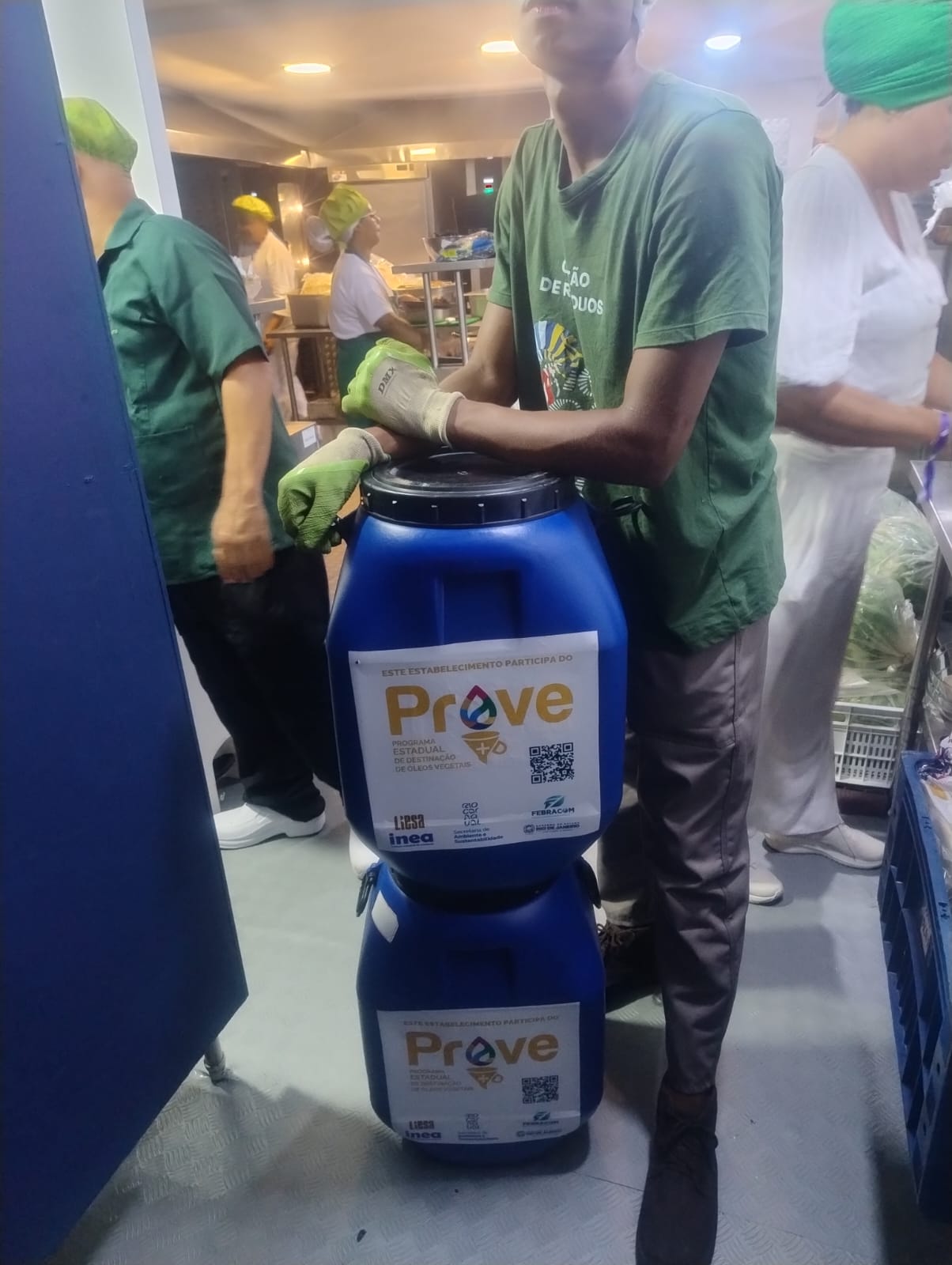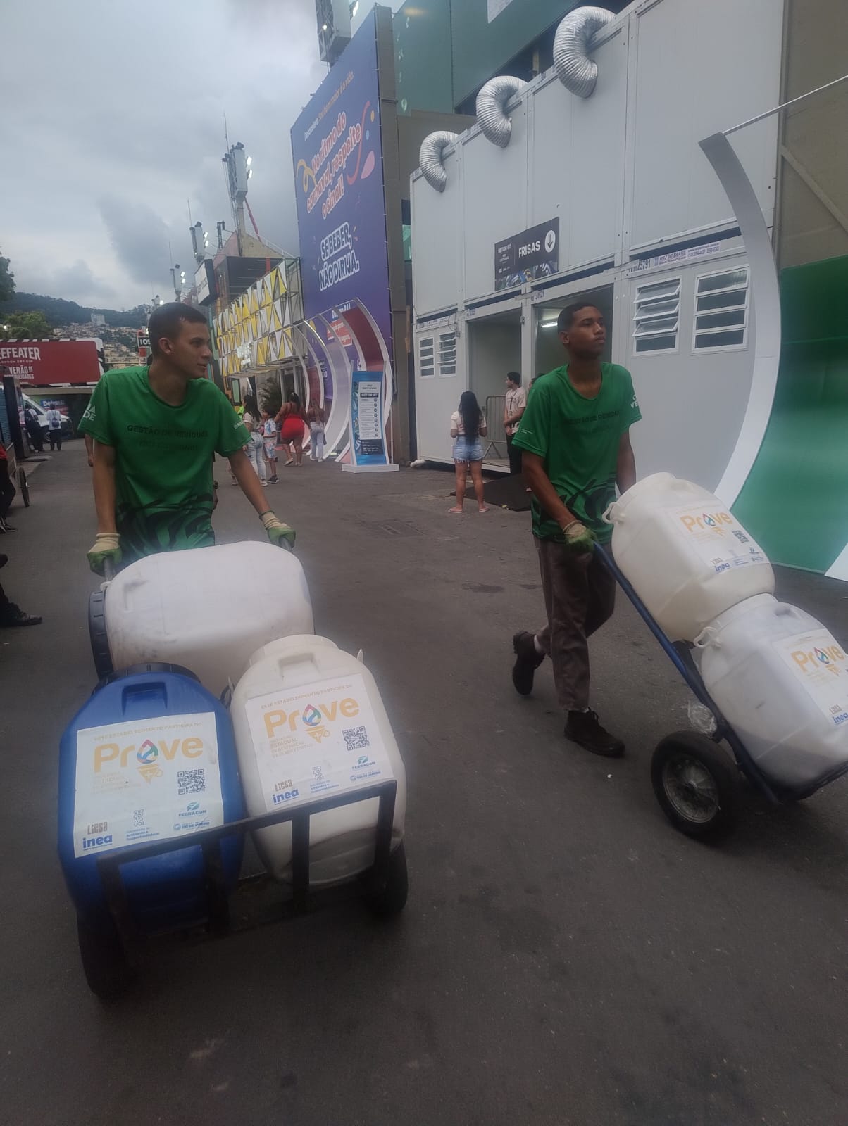 A secretaria e o Inea disponibilizaram 88 bombonas para 25 camarotes e oito quiosques do sambódromo durante os desfiles. O óleo de cozinha usado foi recolhido por 14 catadores de materiais recicláveis e quatro técnicos da Febracom. Todo esse material foi levado para uma fábrica de sabão pastoso situada no bairro da Mangueira, uma vez que o óleo de cozinha usado é utilizado como insumo na fabricação desse produto. A verba obtida com a comercialização desse resíduo foi revertida para os catadores, gerando emprego e renda para essas pessoas. Neste ano, a renda revertida para os catadores cooperados foi da ordem de R$ 13.607,15, um aumento de 129,73% em relação a 2025.
