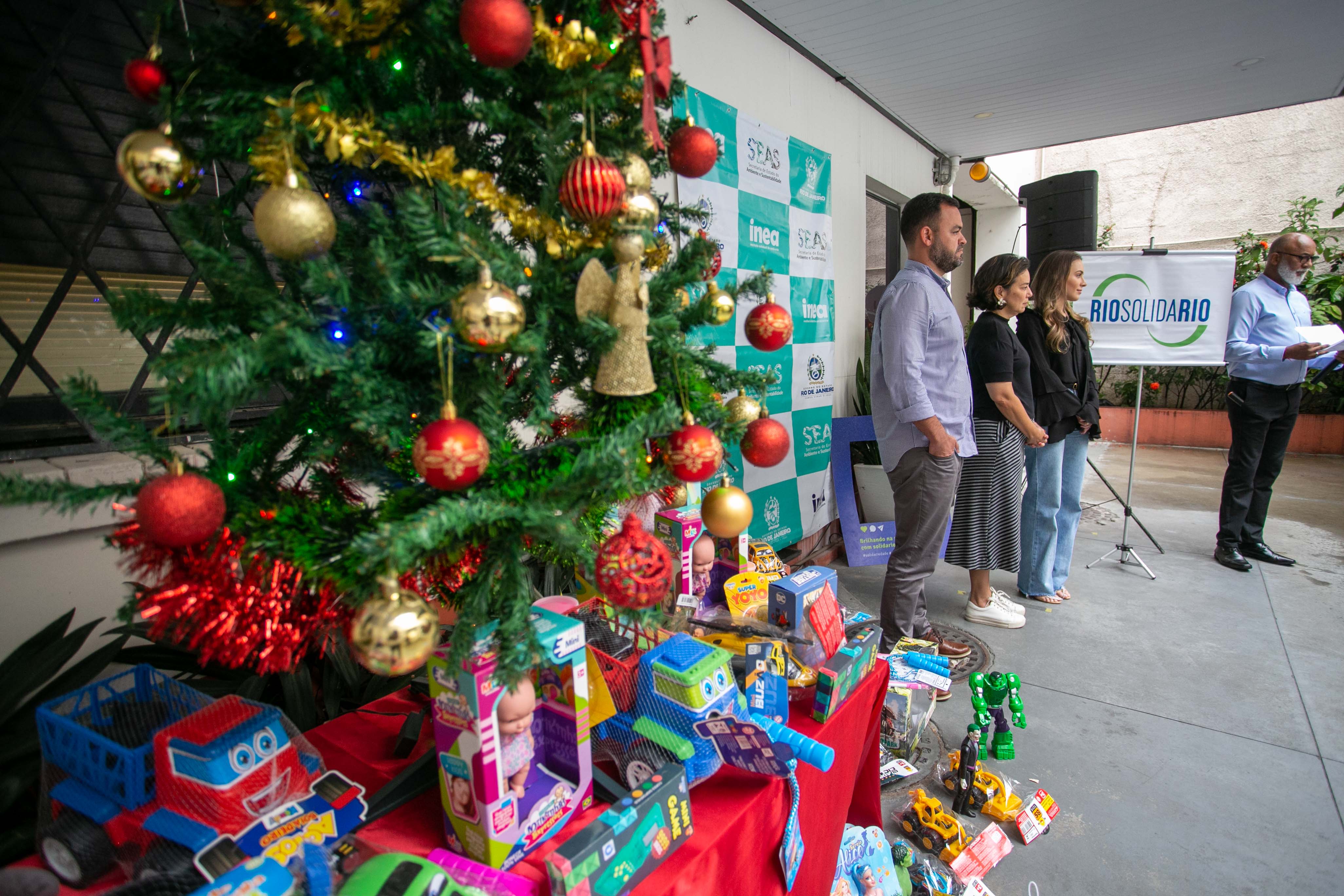 Nesta terça-feira (6/12), a Secretaria de Estado do Ambiente e Sustentabilidade (Seas), o Instituto Estadual do Ambiente (Inea) e o RioSolidário realizaram um evento simbólico para celebrar a arrecadação de brinquedos novos para crianças em vulnerabilidade social. A ação conjunta busca levar um Natal mais feliz para as famílias atendidas pela organização sem fins lucrativos e, até o momento, já recebeu mais de 300 brinquedos novos.