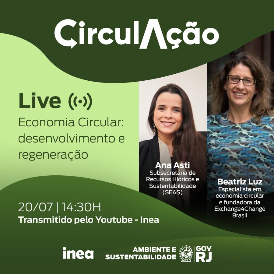 A Subsecretária de Recursos Hídricos e Sustentabilidade da SEAS, Ana Asti, vai entrevistar a especialista em economia circular e fundadora da Exchange4Change Brasil, Beatriz Luz, que também está como uma das professoras do primeiro curso de capacitação sobre o tema oferecido pelo Programa.