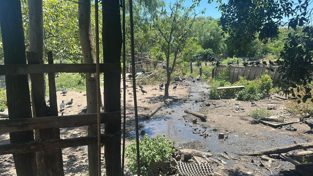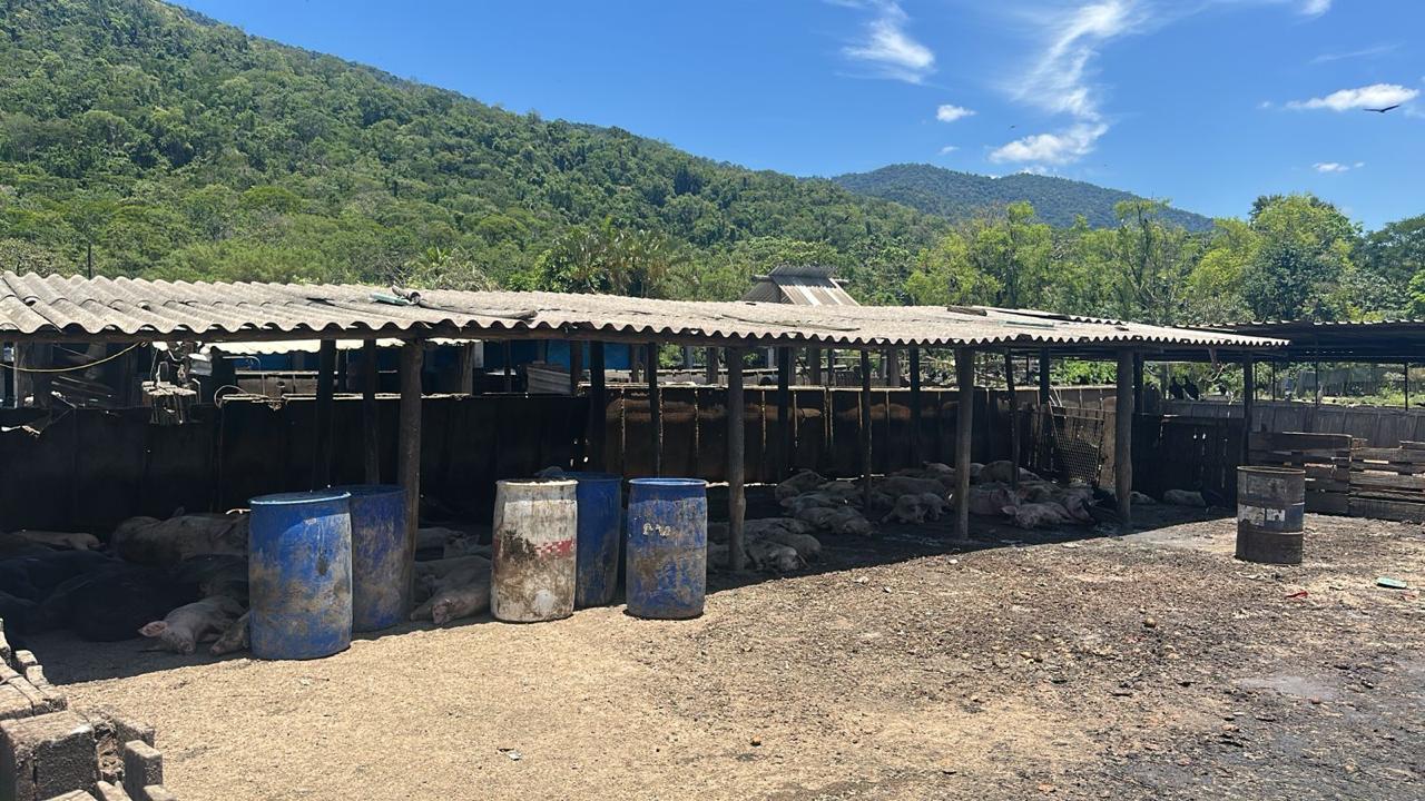A vistoria foi motivada por denúncias de maus-tratos, abate irregular e poluição ambiental. Ao chegarem no local, os agentes constataram forte odor, despejo de sangue e água residuais nas galerias pluviais e o descarte direto de vísceras e sangue no solo, sem qualquer tratamento. O criadouro operava em total desacordo com as normas, apresentando condições insalubres, proliferação de vetores e riscos de contaminação do solo e dos recursos hídricos, incluindo o lençol freático.