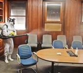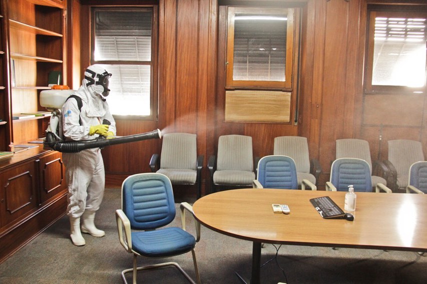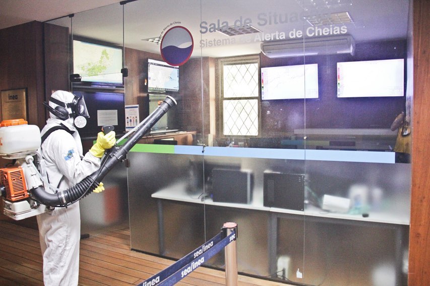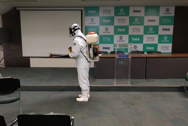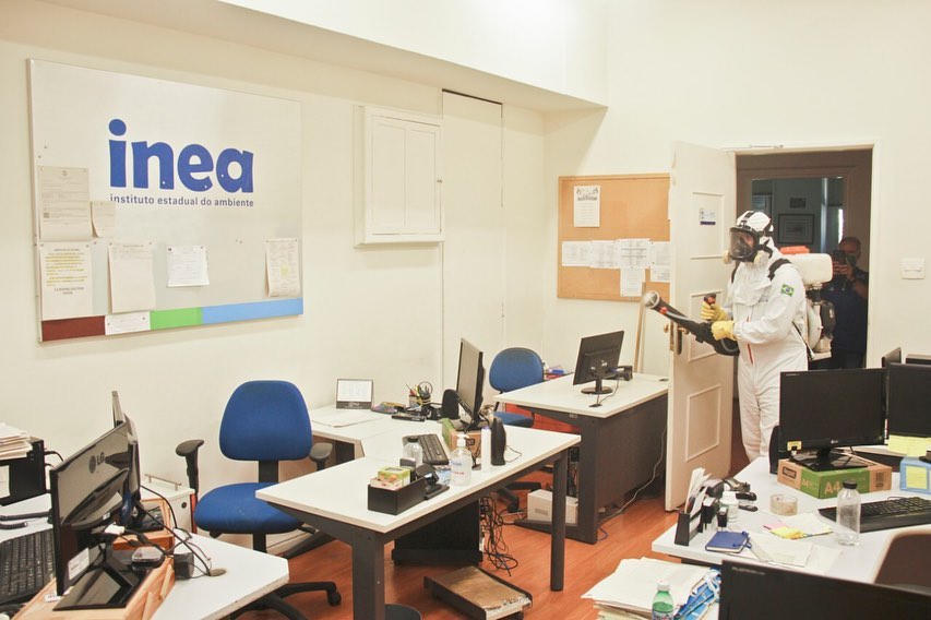 A sede da Secretaria de Estado do Ambiente e Sustentabilidade e do Inea, no Centro do Rio, recebeu no sábado (8/8) um serviço especializado de sanitização. O objetivo era eliminar quaisquer vírus, bactérias, germes e fungos de superfícies que não possam ser removidos com uma limpeza comum.