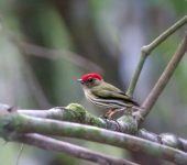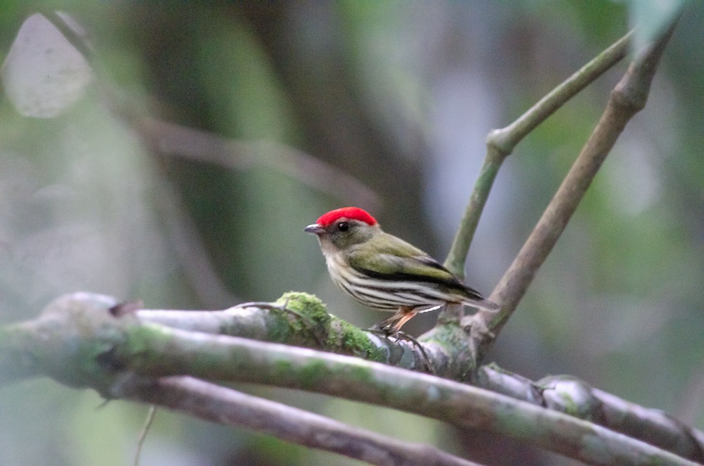 Outra espécie que chamou a atenção dos 27 participantes dessa edição é o Tangará-rajado (Machaeropterus regulus). O indivíduo encontrado durante o passeio era um macho – identificável pela coroa e nuca vermelhas, características ausentes nas fêmeas. A espécie também é endêmica da Mata Atlântica. Sua distribuição geográfica abrange os estados da Bahia, Minas Gerais, Rio de Janeiro e Espírito Santo. De acordo com os observadores, seu avistamento é raro nas florestas fluminenses.