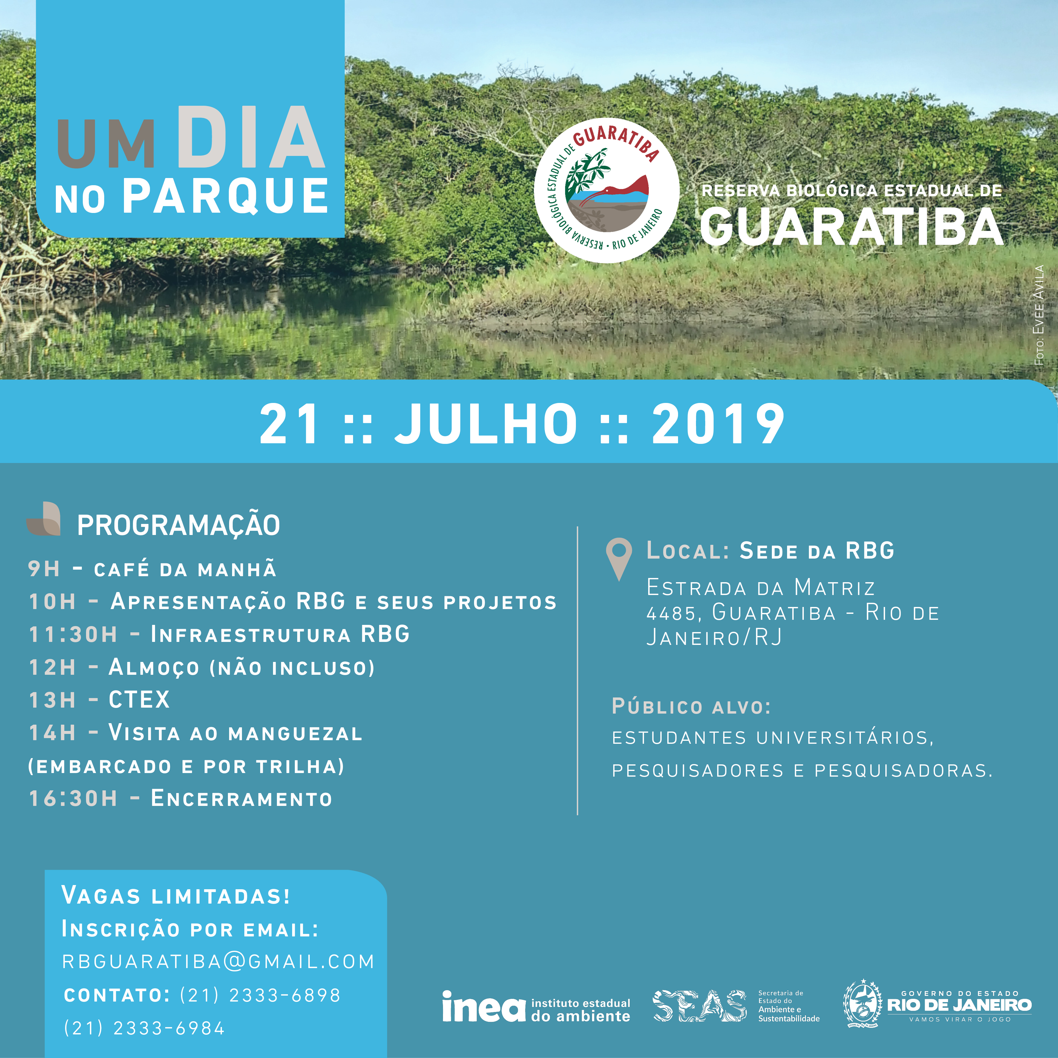 • Reserva Biológica de Guaratiba: Visita ao manguezal. O ponto de encontro será às 14h, na sede da reserva, Estrada da Matriz, nº 4.485, Guaratiba.