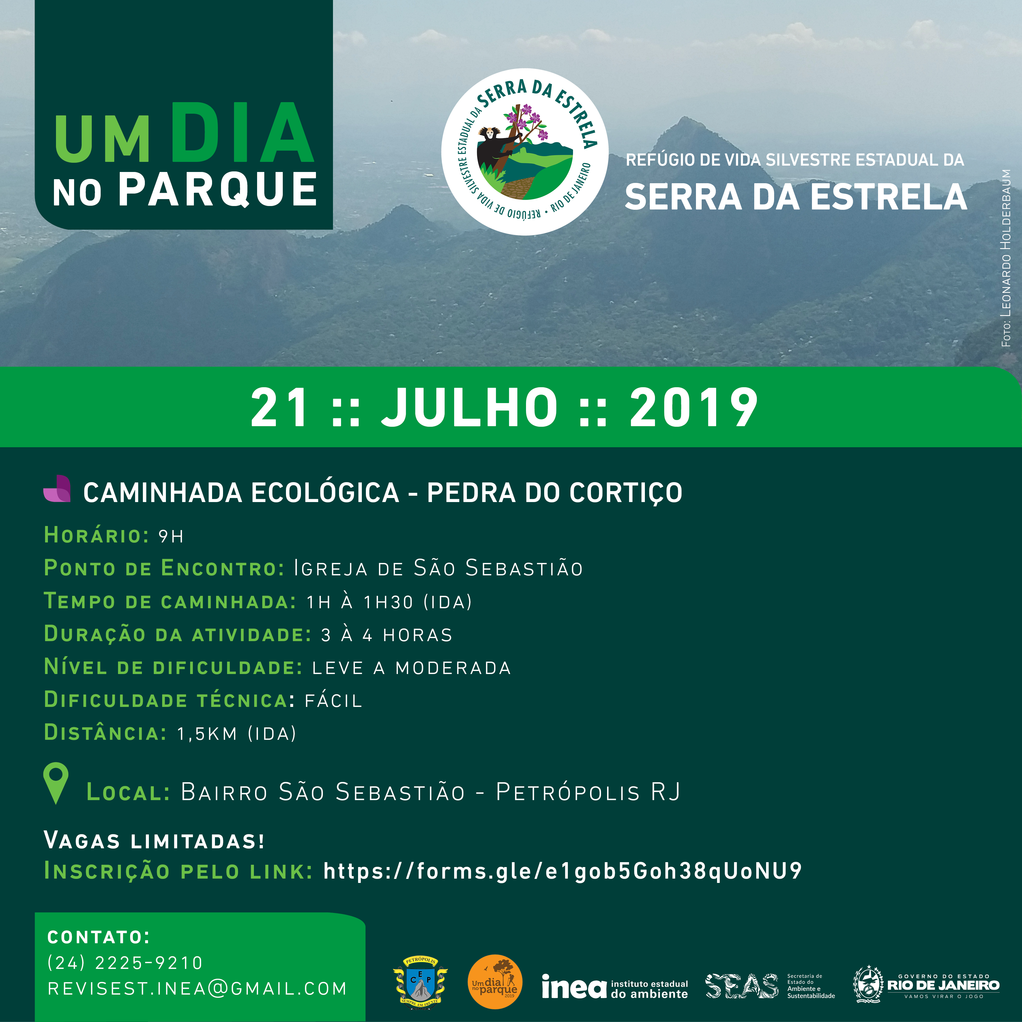 • Refúgio de Vida Silvestre Estadual da Serra da Estrela: Caminhada pela trilha que leva à Pedra do Cortiço. O ponto de encontro será às 9h, em frente à Igreja de São Sebastião.