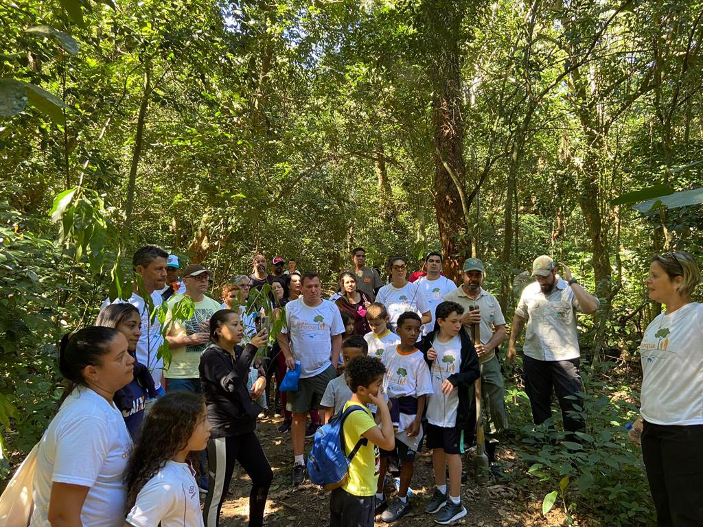 No Parque Estadual Cunhambebe (PEC), 77 participantes foram recepcionados logo pela manhã com a entrega de brindes e um coffee break. Após a abertura, os visitantes aprenderam sobre o meliponário – área de criação de abelhas sem ferrão – e a brigada de incêndios florestais e ações correlatas do PEC. Em seguida, percorreram as Trilhas do Curumim e das Ruínas, onde realizaram também o plantio de mudas e a instalação de três placas.