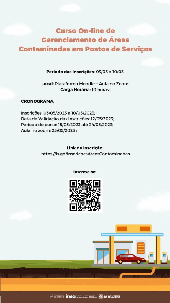 O Instituto Estadual do Ambiente (Inea), por meio da Universidade do Ambiente, promoverá, entre os dias 15/5 e 25/5, a primeira fase do Curso de Gerenciamento de Áreas Contaminadas em Postos de Serviços. A formação será inteiramente online, sendo necessário possuir um computador ou aparelho celular com acesso à internet.