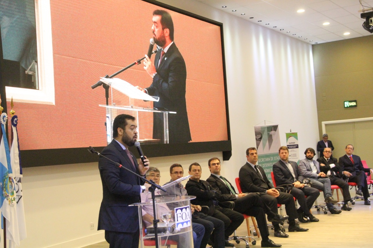 O vice-governador Cláudio Castro abriu o 2º Workshop de Desenvolvimento do Médio Paraíba e Sul Fluminense, que aconteceu em Volta Redonda, na quinta-feira (24). Estavam presentes também o secretário estadual de Desenvolvimento Econômico, Lucas Tristão, e cinco prefeitos de cidades da região – Pinheiral, Piraí, Volta Redonda, Barra Mansa e Rio Claro –, além de representantes de outras prefeituras, que enviaram seus secretários de Meio Ambiente e Desenvolvimento. O evento incluiu o curso do Instituto Estadual do Ambiente (Inea), sobre Instrumentos de Controle Ambiental.